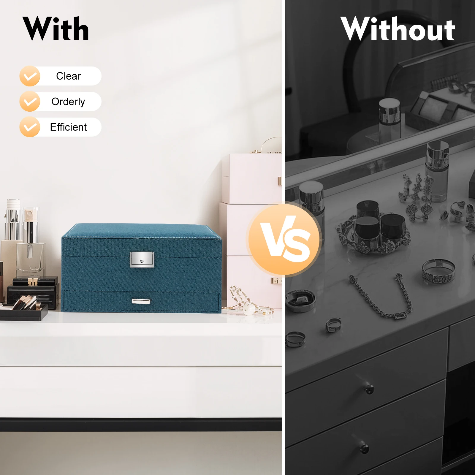 Thoughtful Design: This stylish jewelry box comes with stackable compartments, which can create different layouts that can meet different needs and keep all types of jewelry well organized, neat, and beautifully displayed for easy access.